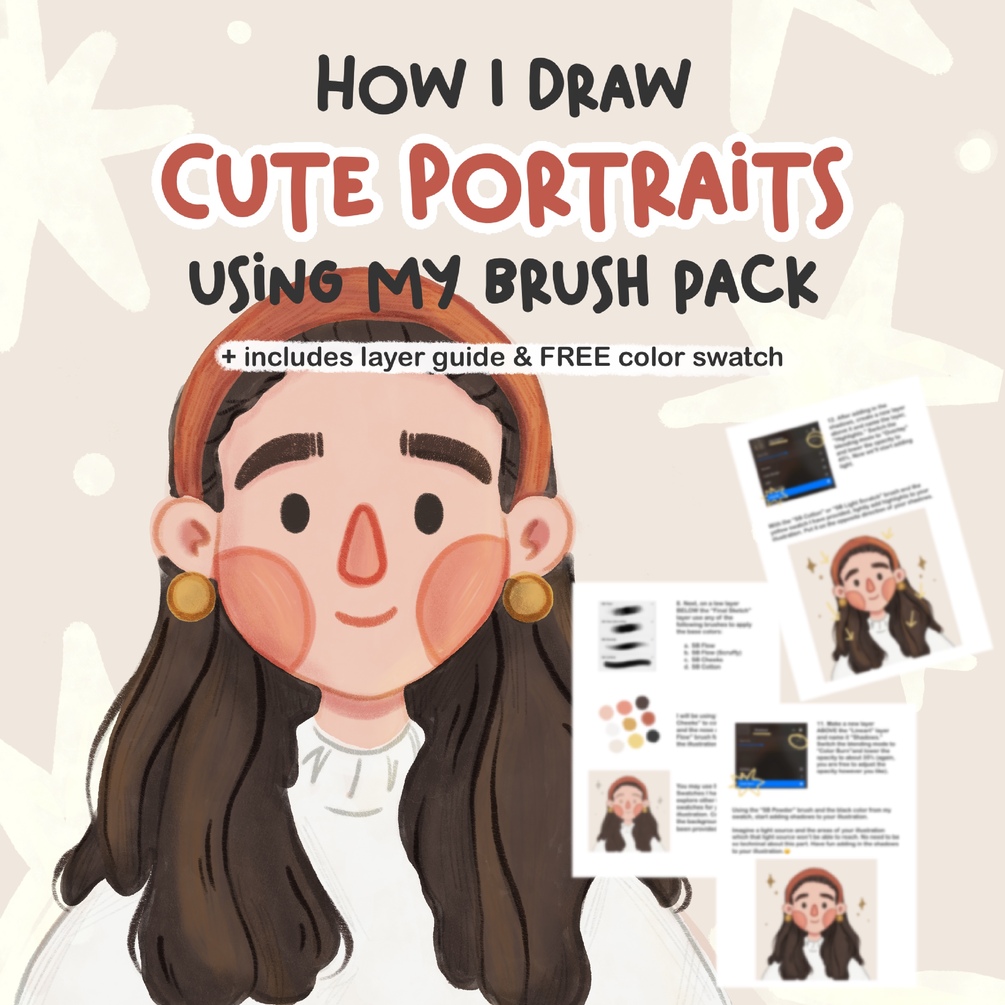 "How I Draw Cute Portraits" PDF File, FREE Color Swatch, Layer Guide, Reference Photo